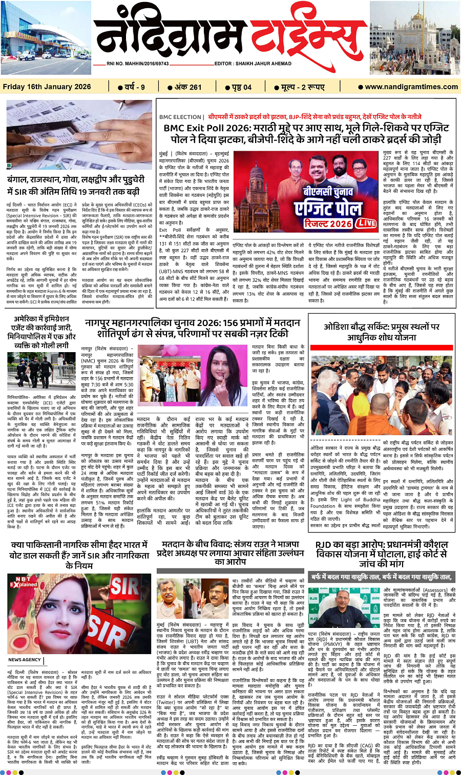 Nandigram Times | Nanded | ePaper | 16 January 2026 January 16, 2026 Nandigram Times ePaper –Nanded – नांदेड, मराठवाड़ा और महाराष्ट्र की ताज़ा खबरें हिंदी में। आज का ई-पेपर पढ़ें, लोकल न्यूज़ और भरोसेमंद रिपोर्टिंग। << First << 1 2 3 4 >> Last >> Page 1Page 2Page 3Page 4 × Nandigram Times | Nanded | ePaper | 16 January 2026 PAGE-1PAGE-2PAGE-3PAGE-4 Full PDF << First << 1 >> Last >> PAGE-1PAGE-2PAGE-3PAGE-4