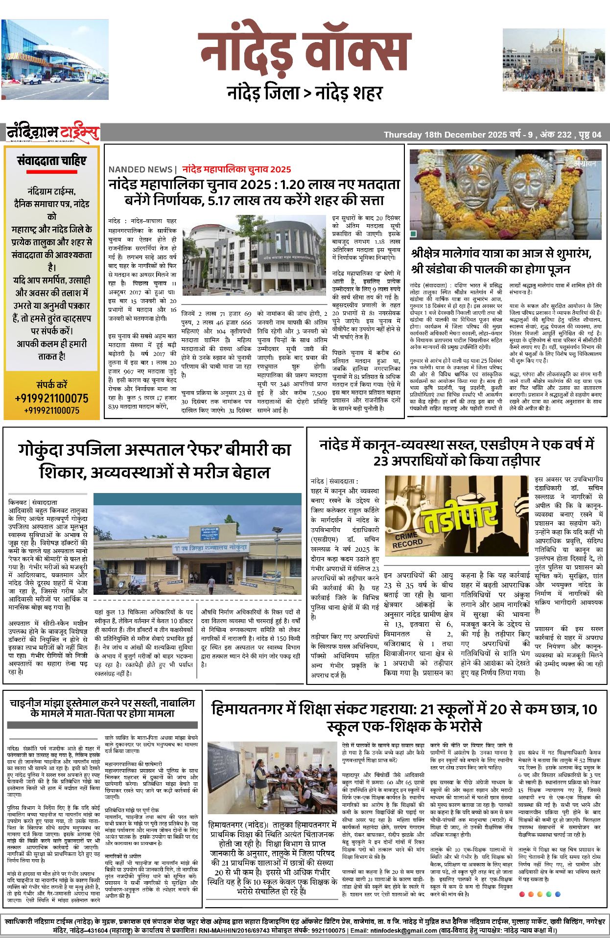 18DEC2025 Page: 4 December 18, 2025 ePaper Nandigram Times, Nandigram Times ePaper, epaper nandigram times, nandigramtimes, epaper, nanded epaper, maharashtra epaper, india epaper, hindi epaper, daily epaper, epaper nandigramtimes, << First << 1 2 3 4 >> Last >> Page 1Page 2Page 3Page 4 × 18DEC2025 PAGE-1PAGE-2PAGE-3PAGE-4 Full PDF << First << 4 >> Last >> PAGE-1PAGE-2PAGE-3PAGE-4