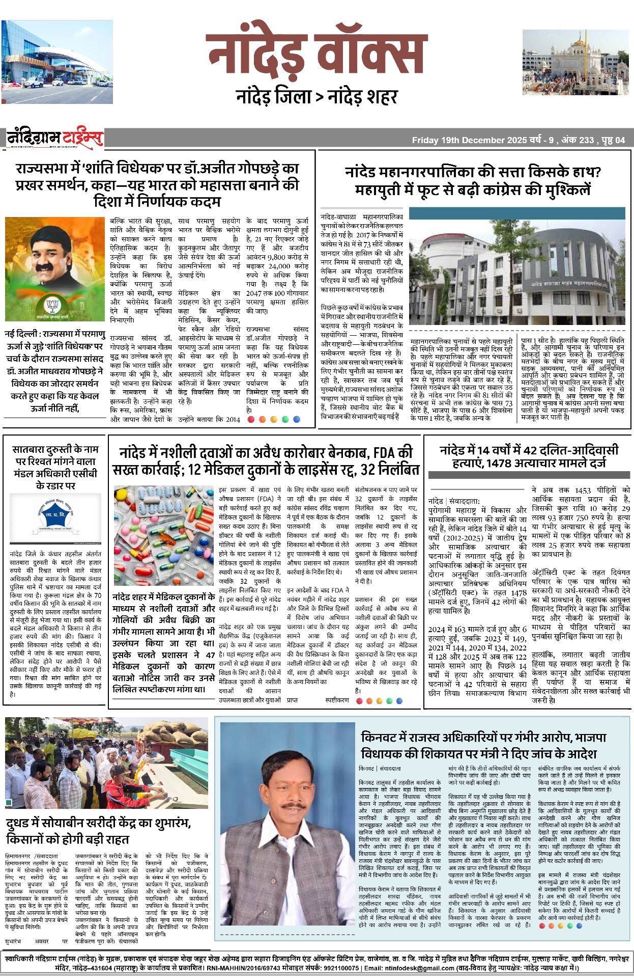 19DEC2025 Page: 4 December 19, 2025 ePaper Nandigram Times, Nandigram Times ePaper, epaper nandigram times, nandigramtimes, epaper, nanded epaper, maharashtra epaper, india epaper, hindi epaper, daily epaper, epaper nandigramtimes, << First << 1 2 3 4 >> Last >> Page 1Page 2Page 3Page 4 × 19DEC2025 PAGE-1PAGE-2PAGE-3PAGE-4 Full PDF << First << 4 >> Last >> PAGE-1PAGE-2PAGE-3PAGE-4