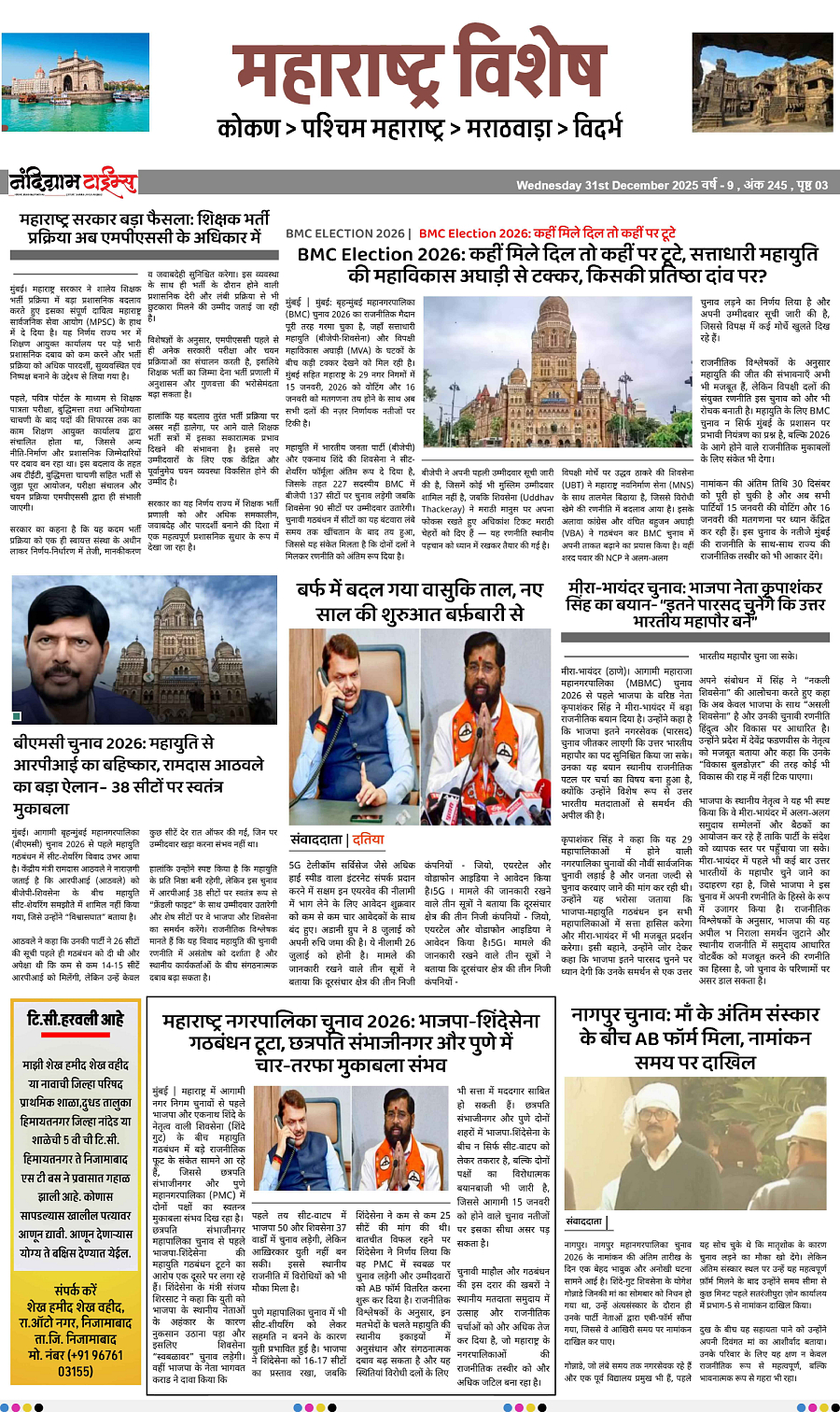 Nandigram Times | Nanded | Epaper | 31 December 2025 Page: 3 December 31, 2025 Nandigram Times ePaper – Nanded – नांदेड, मराठवाड़ा और महाराष्ट्र की ताज़ा खबरें हिंदी में। आज का ई-पेपर पढ़ें, लोकल न्यूज़ और भरोसेमंद रिपोर्टिंग। << First << 1 2 3 4 >> Last >> Page 1Page 2Page 3Page 4 × Nandigram Times | Nanded | Epaper | 31 December 2025 PAGE-1PAGE-2PAGE-3PAGE-4 Full PDF << First << 3 >> Last >> PAGE-1PAGE-2PAGE-3PAGE-4