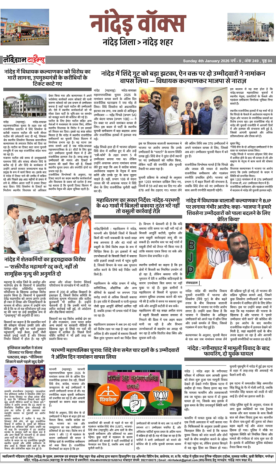 Nandigram Times | Nanded | Epaper | 4 January 2026 Page: 4 January 04, 2026 Nandigram Times ePaper –Nanded – नांदेड, मराठवाड़ा और महाराष्ट्र की ताज़ा खबरें हिंदी में। आज का ई-पेपर पढ़ें, लोकल न्यूज़ और भरोसेमंद रिपोर्टिंग। << First << 1 2 3 4 >> Last >> Page 1Page 2Page 3Page 4 × Nandigram Times | Nanded | Epaper | 4 January 2026 PAGE-1PAGE-2PAGE-3PAGE-4 Full PDF << First << 4 >> Last >> PAGE-1PAGE-2PAGE-3PAGE-4