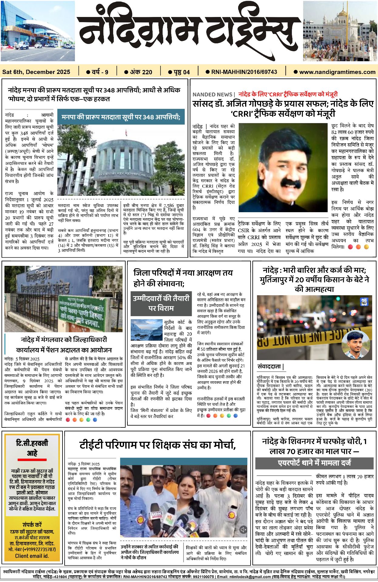 6DEC2025 Page: 4 December 06, 2025 ePaper Nandigram Times, Nandigram Times ePaper, epaper nandigram times, nandigramtimes, epaper, nanded epaper, maharashtra epaper, india epaper, hindi epaper, daily epaper, epaper nandigramtimes, << First << 1 2 3 4 >> Last >> Page 1Page 2Page 3Page 4 × 6DEC2025 PAGE-1PAGE-2PAGE-3PAGE-4 Full PDF << First << 4 >> Last >> PAGE-1PAGE-2PAGE-3PAGE-4