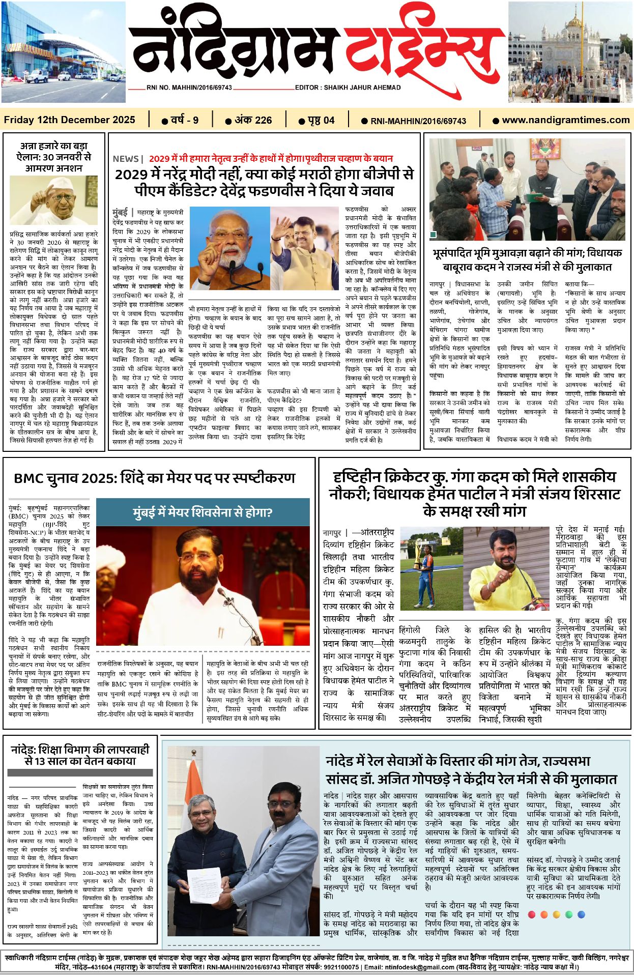 12DEC2025 Page: 4 December 12, 2025 ePaper Nandigram Times, Nandigram Times ePaper, epaper nandigram times, nandigramtimes, epaper, nanded epaper, maharashtra epaper, india epaper, hindi epaper, daily epaper, epaper nandigramtimes, << First << 1 2 3 4 >> Last >> Page 1Page 2Page 3Page 4 × 12DEC2025 PAGE-1PAGE-2PAGE-3PAGE-4 Full PDF << First << 4 >> Last >> PAGE-1PAGE-2PAGE-3PAGE-4